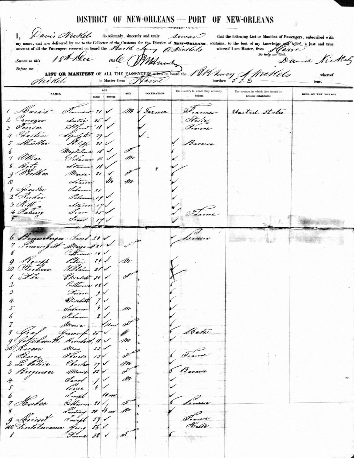 Beide sind am 18.12.1856 über Le Harve nach New Orleans eingewandert.