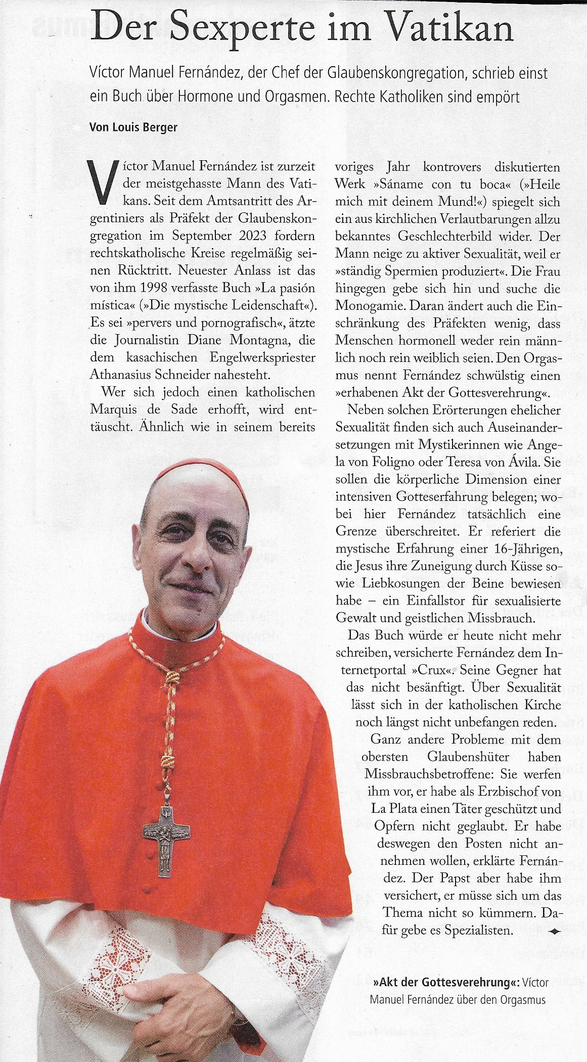 Kritik an Kardinal Victor Manuel Fernández wegen Orgasmus Buch: