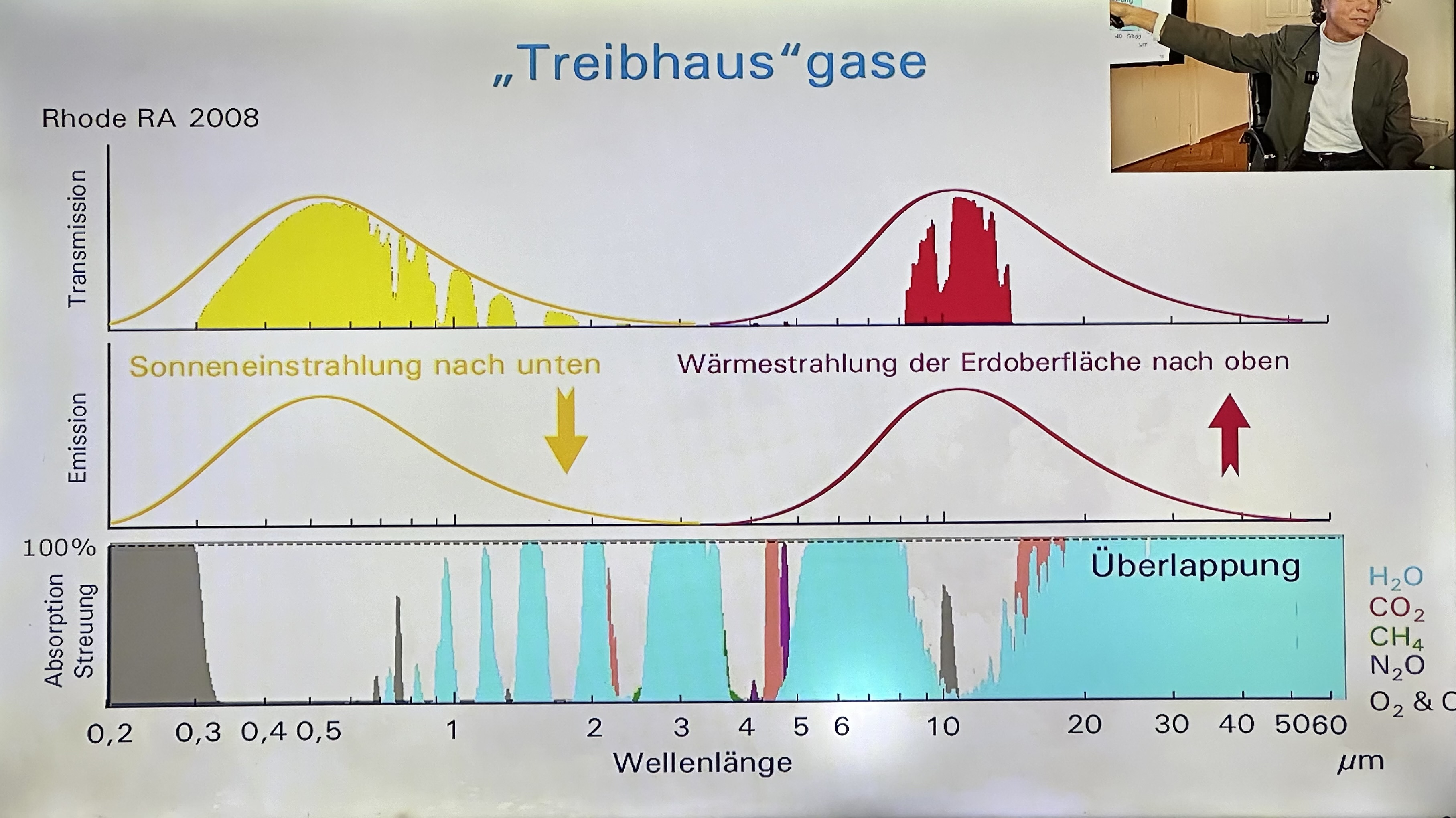 Ganz besonders deutlich wird die unredliche Absicht des Vortragenden in Verbindung mit dem Zitat des wissenschaftlichen Dienstes der Bundesregierung, das die Thesen des Vortragenden stützen soll, die Atmosphäre sei durch das vorhandene CO2 gesättigt und lasse in den betreffenden Banden keine Erdstrahlen mehr durch, so dass es keinen Einfluss habe, weiteres CO2 einzubringen. Daraus leitet er eine Verunglimpfung der verantwortlichen Politiker ab, die angeblich ihren eigenen wissenschaftlichen Dienst wissentlich ignorierten, um ihre bewussten, dem Volke schadenden Fehlentscheidungen, aufrechterhalten zu können. Wenn man jedoch den entsprechenden Artikel des wissenschaftlichen Dienstes selbst nachliest, stellt man verbüfft fest, dass das dort gezogene Fazit genau das Gegenteil bedeutet.